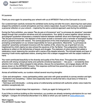 >>>✨ Un petit retour en image accompagné d'un commentaire de Paris, reçu par mail après l'exposition via Artboxy, qui m'a profondément touchée. 🎨